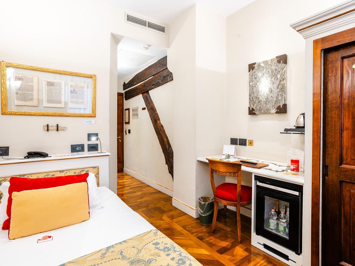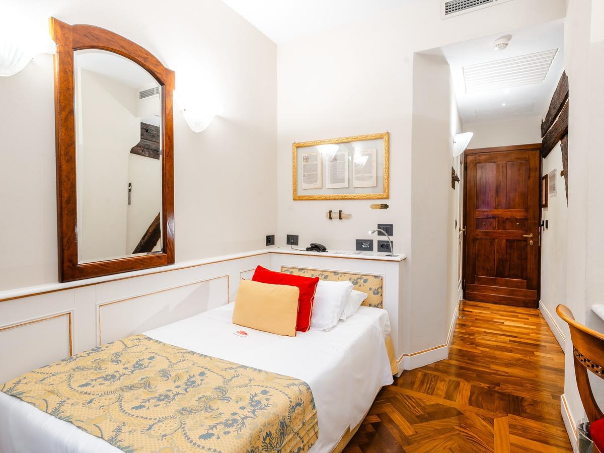 Accoglienti e confortevoli, in un ambiente armonioso e rilassante, sono arredate in stile classico con dettagli che fanno emergere l’atmosfera medievale che caratterizza tutto l’Hotel e con gusto e attenzione per i particolari. Queste eleganti sistemazioni sono dotate di tutte le comodità necessarie per un soggiorno perfetto nel centro di Bologna.